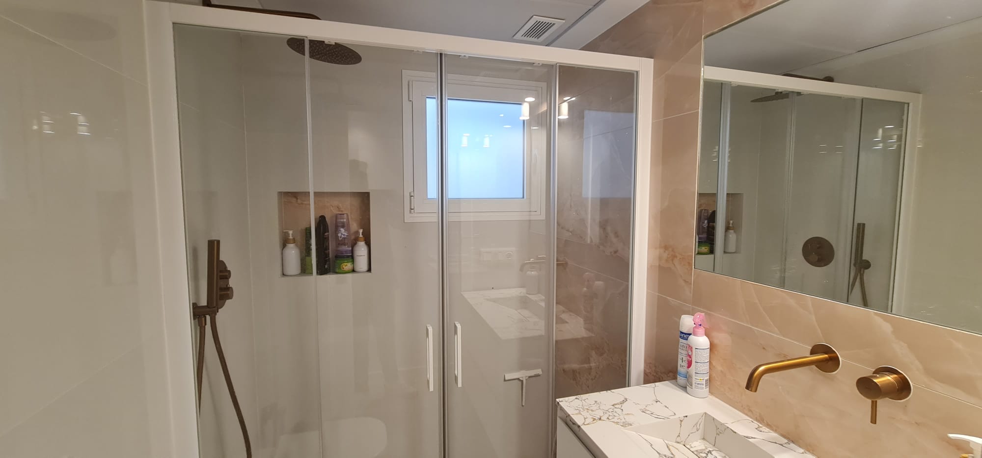 La propiedad destaca por sus excelentes calidades y acabados, incluyendo aire acondicionado centralizado que garantiza un ambiente agradable durante todo el año. Además, los armarios empotrados ofrecen un amplio espacio de almacenamiento, mientras que las ventanas de climalit aseguran un aislamiento óptimo.
